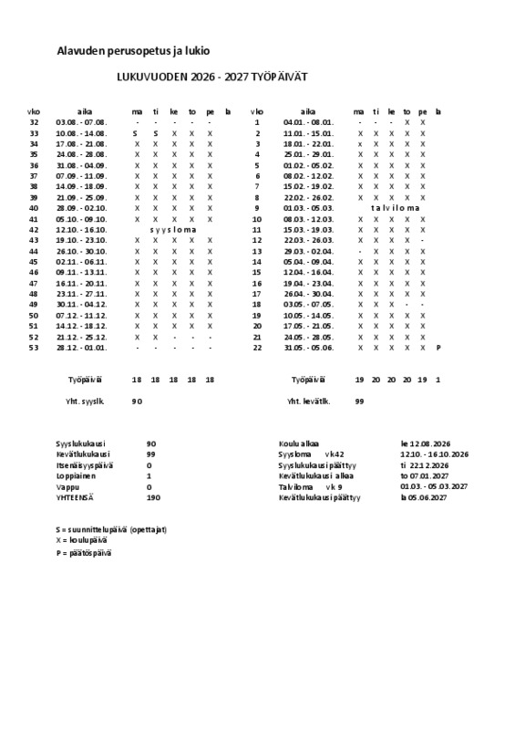 | Talviloma (vko 9) | 23.2. - 27.2.2026 |