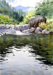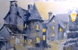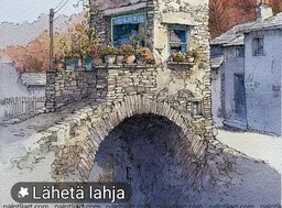 Maisema akvarelleilla. Tiedoston saa ladata omalle koneelle.