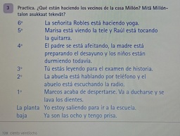 Voit myös lukea s. 126 kuuntelun eri kohtien vaihtoehdot kuuntelua varten ja kääntää harjoituksen 13 lauseet espanjaksi