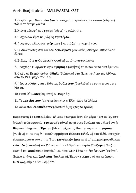 Moniste: Aoristiharjoituksia MALLIVASTAUKSET Jaa Sulje Tämän tiedoston tekstivastine: (tyhjä tekstivastine) Aoristiharjoituksia MALLIVASTAUKSET.pdf 32.7 kt
