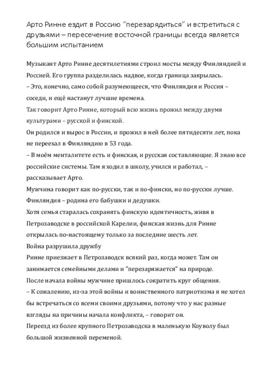 Moniste - Arto Rinne käy Venäjällä "latautumassa"
