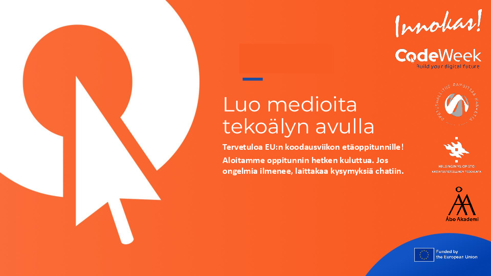 Etäoppitunnin aihe on tekoäly ja erityisesti mediaa luovat tekoälyt