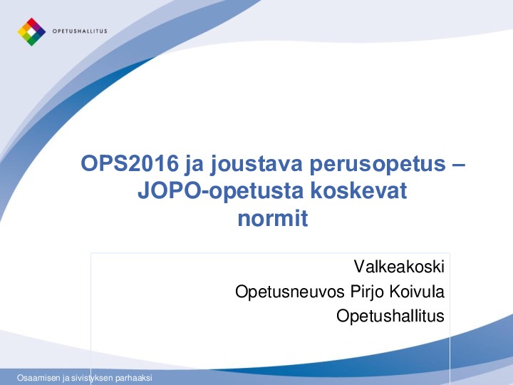Koivula: Jopo-opetusta koskevat normit Jaa Sulje Tekijä: Jouko Jokinen Tämän tiedoston tekstivastine: (tyhjä tekstivastine) JOPO- koulutuspäivä Valkeakoski 2016.pdf 318.5 kt