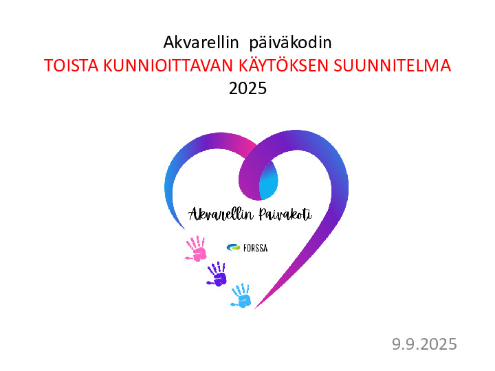 Toista kunnioittavan käytöksen suunnitelma Jaa Toista kunnioittavan käytöksen suunnitelma toista-kunnioittavan käytöksen_suunnitelma_2025.pdf 249.5 kt