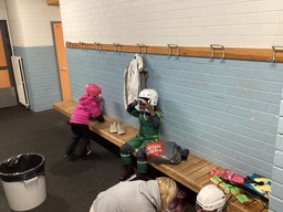 Viskarit pääsivät tiistaina ensimmäistä kertaa luistelemaan. Lähdimme päiväkodilta kohti jäähallia yhdessä Värjäreiden viskareiden kanssa. Kävelymatkalle otettiin pari Värjäreiden porukasta. Luistelut sujuivat hienosti ja tekniikkaa harjoiteltiin luistelutukien avulla. On tärkeää myös oppia nousemaan ylös, kun kaatuu. Pidimme tietysti huolen myös turvallisuudesta tarkistaen, että kypärät olivat kunnolla päässä ja matkoilla oli päällä huomioliivit.