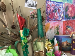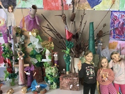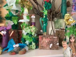 Taikametsä- projektimme sai jatkoa luettuamme Taikamaailmasta kertovaa kirjaa. Kirja inspiroi lapsia askartelemaan "Aurinkoisen" sekä kultaisia ja hopeisia oksia. Viskarit harjoittelivat käyttämään Ipadilla Green Screen- sovellusta ja tuloksena syntyikin upeita kuvia. Katselutila