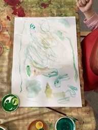 Elokuun puolen välin taittuessa arkirutiinit sujuivat jo oikein hyvin. Pidimme salissa musiikkihetkeä ja liikuntaa. Kädentaitoja harjoittelimme vesivärimaalausten muodossa, samalla suunnitellen syksyä ja syksyyn kuuluvia kädentaitoja.