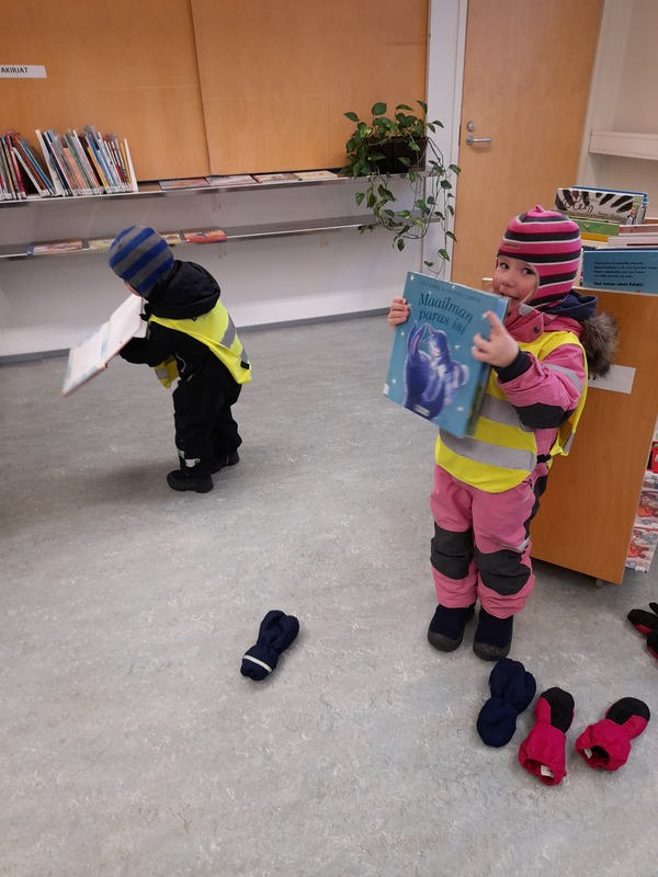 Kävimme retkeilemässä leikkipuistossa ja kirjastossa.