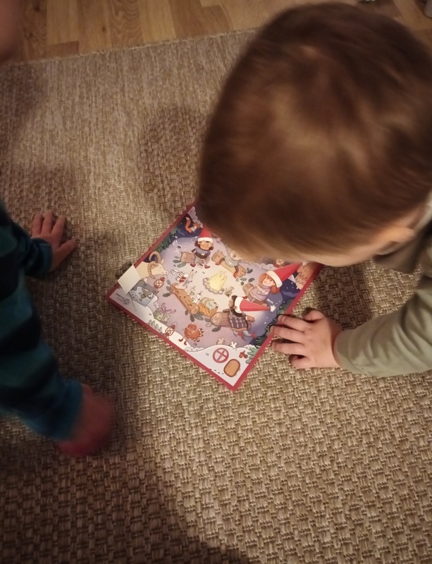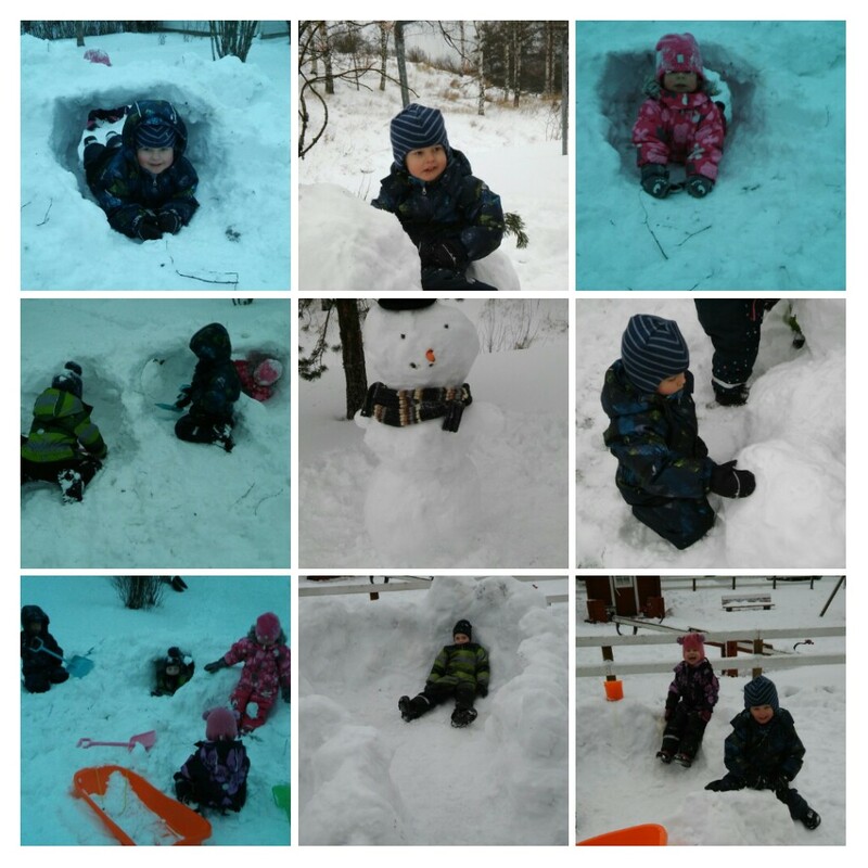 Tänään me piirrettiin lumiukkoja ja tehtiin meidän lempipalapelejä, kun ulkona paukkui pakkanen.