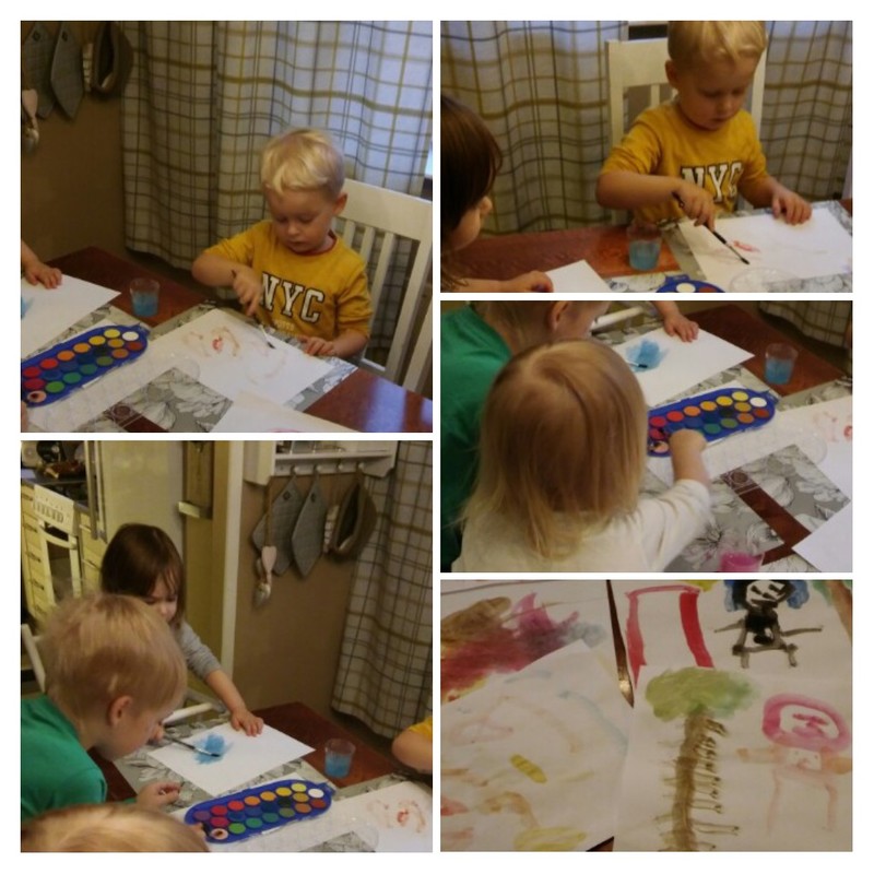Tänään oli kurja ilma ulkona,niin me leikittiin taidemaalareita.