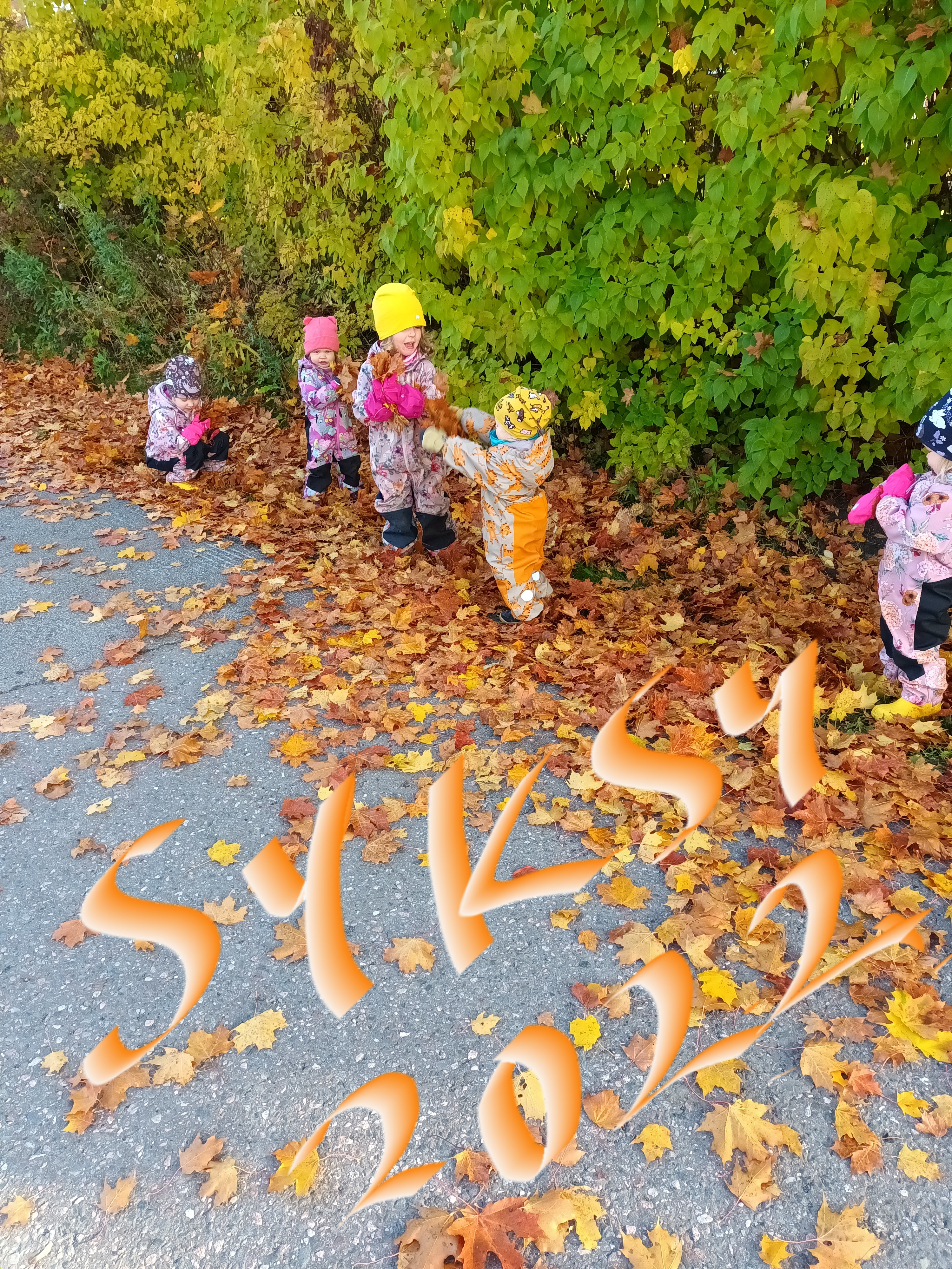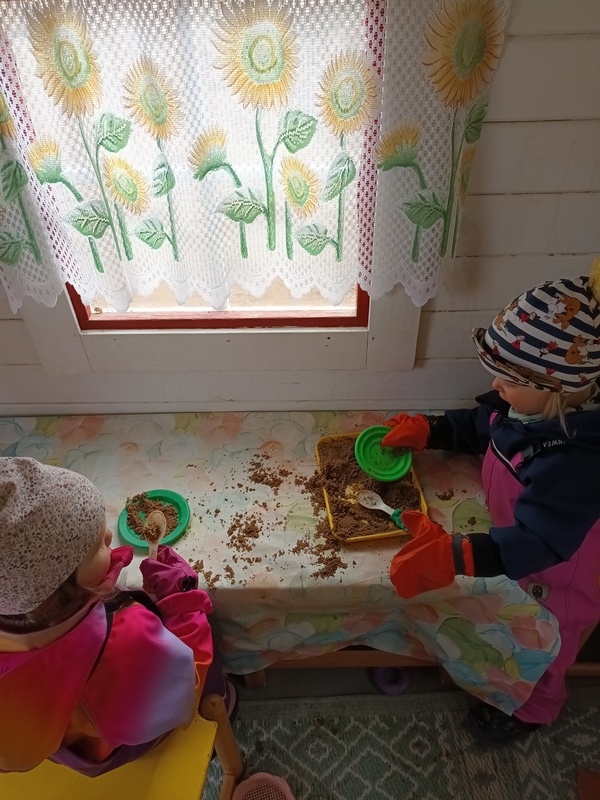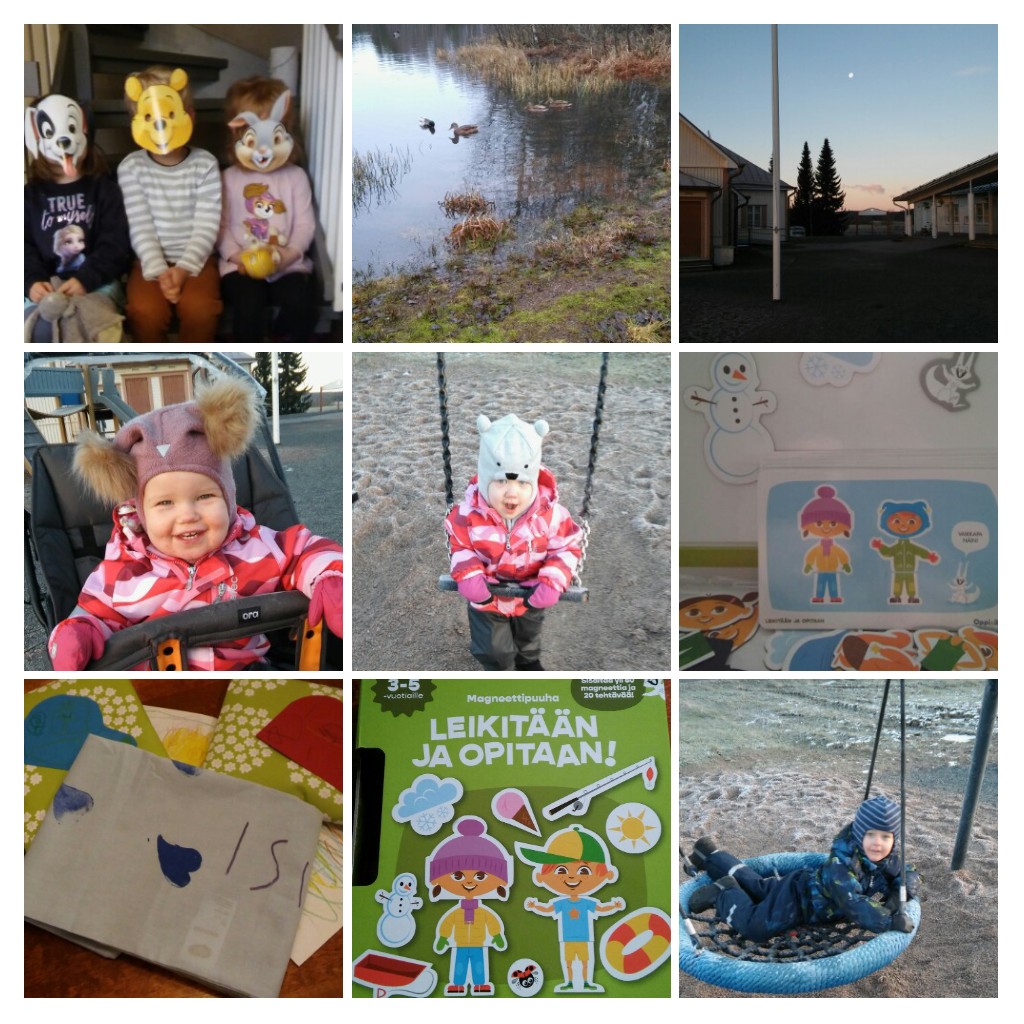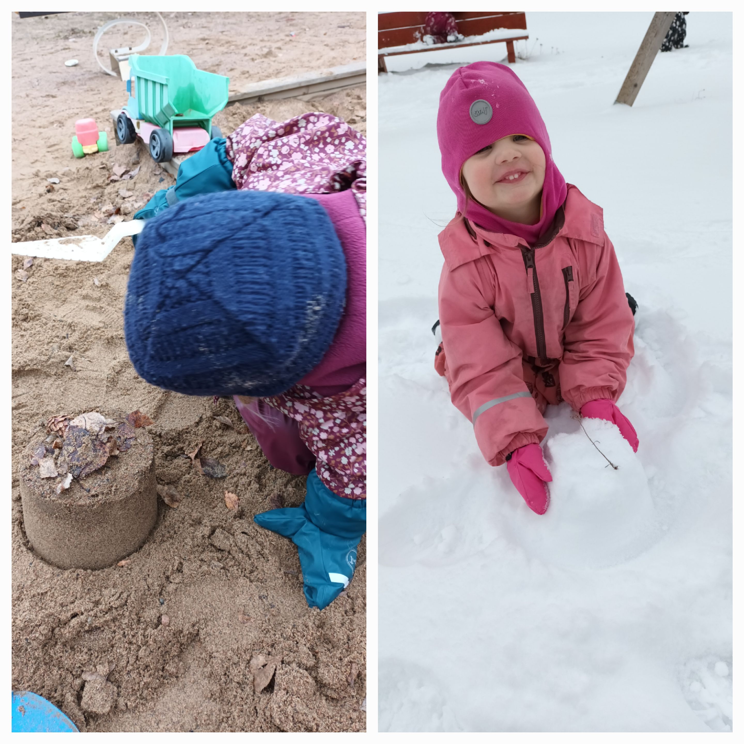 Marraskuussa leikittiin ulkona piilosta.Oravakin varmaan leikki meidän kanssa piilosta.Hiekkakakkujakin vielä teimme, kun maa ei ollut vielä niin jäässä.
