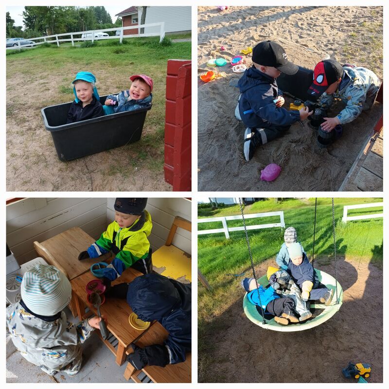 Elokuussa on keinuttu, tehty paljon hiekkakakkuja, askarteltu ja taiteiltu. Laulujakin ollaan opeteltu ja tanssittu mukana.