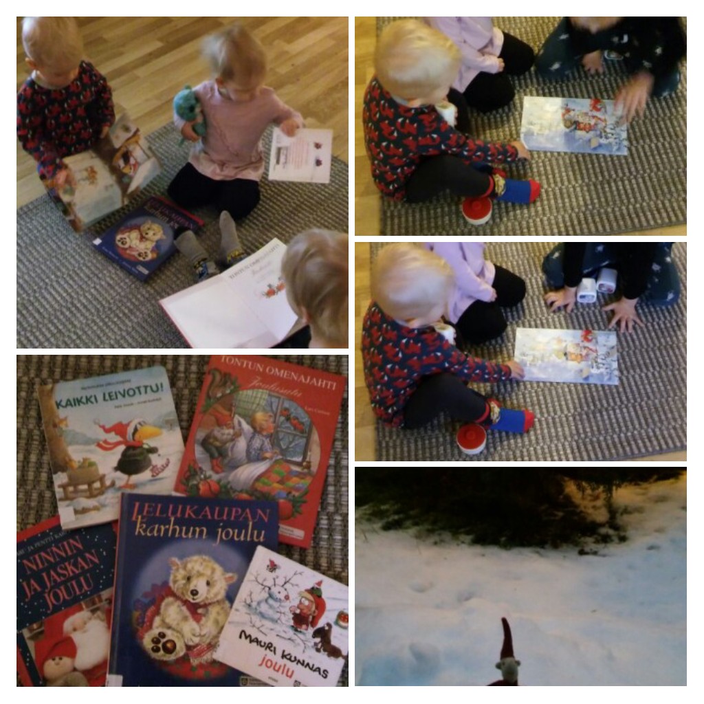 Joulukuussa luetaan joulusatuja,avataan yksi luukku kalenterista joka päivä ja kurkistellaan ikkunasta,näkyykö tonttuja.