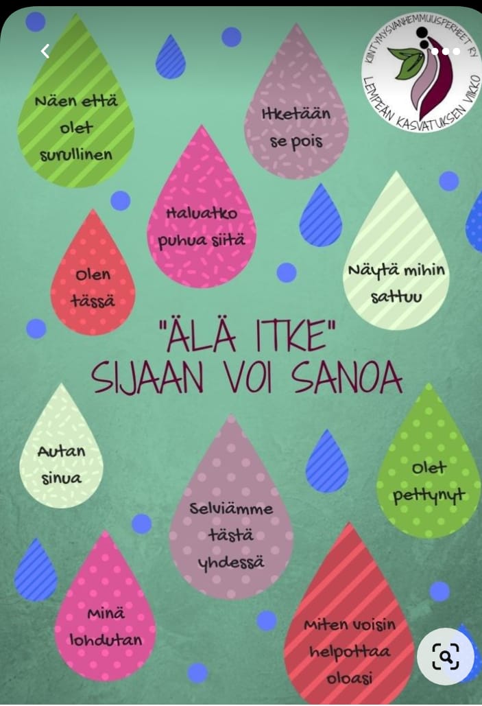 Harjoittelemme kaveritaitoja sekä tunnistamaan omia ja toisten tunteita koko kauden arjen tilanteissa, lisäksi meillä on jääkaapin ovessa viikoittain vaihtuva tunne- tai kaveritaitokortti herättämässä keskustelua.