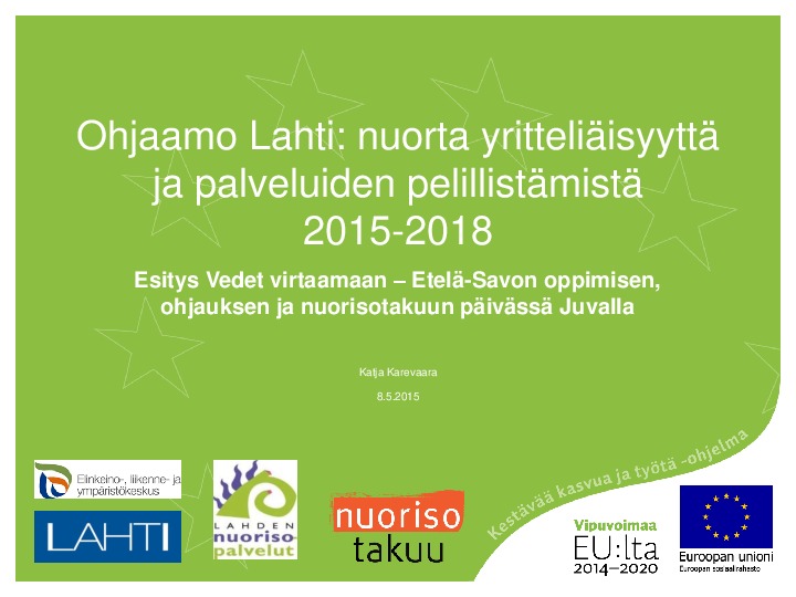 Katja Karevaara: Ohjaamo Lahti Jaa Sulje Tekijä: Tuija Toivakainen Tämän tiedoston tekstivastine: (tyhjä tekstivastine) Katja_Karevaara_080515_Ohjaamo_Lahti.pdf 639 kt Kommentit Kirjaudu sisään lisätäksesi tähän kommentin