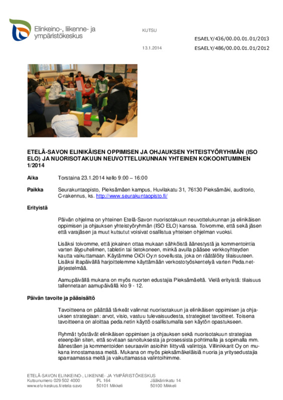 23.1.2014 Kutsu ja ohjelma Jaa Sulje Tämän tiedoston tekstivastine: (tyhjä tekstivastine) 230114_Kokouskutsu_ISO_ELO_Nuorisotakuun_neuvottelukunta.pdf 497.4 kt Kommentit Kirjaudu sisään lisätäksesi tähän kommentin