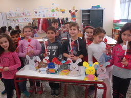 This Easter,the pupils with the help of their teachers decided to make their Easter decorations with reusable material like glass jars, plastic bottles, cardboard paper from previous crafts, wooden ladybirds, cord, old textiles, colourful ribbons brought from home etc. The Easter baskets for instance were made from plastic cartons covered with recyclable cardboard paper.