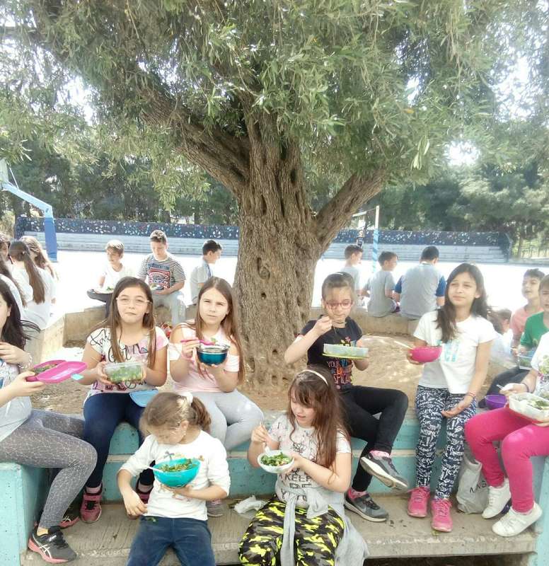 The children brought their eco-friendly lunch boxes for their salad