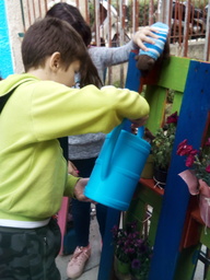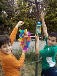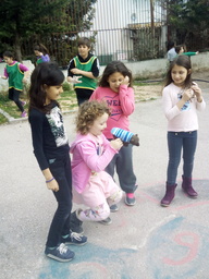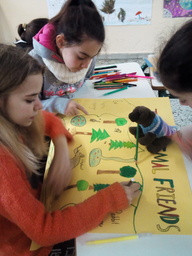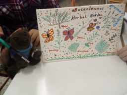 Muru took part in a lot of environmental activities in our school. She helped us with the nests for the swallows that come to Greece every spring; she even made a couple of them on her own! She painted posters, she planted herbs and flowers, she helped the 2nd graders to paint old wooden palettes and make them flower boxes. Our school entrance looks more beautiful now. Thank you Muru!