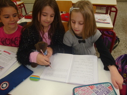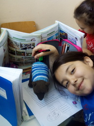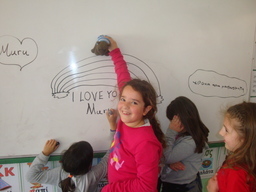 The Greek pupils taught her how to write and read the Greek language and they played a lot of games together! Muru improved her English in the English class and she told us her story! It was so sad that our young pupils decided to change it and give her tail back!