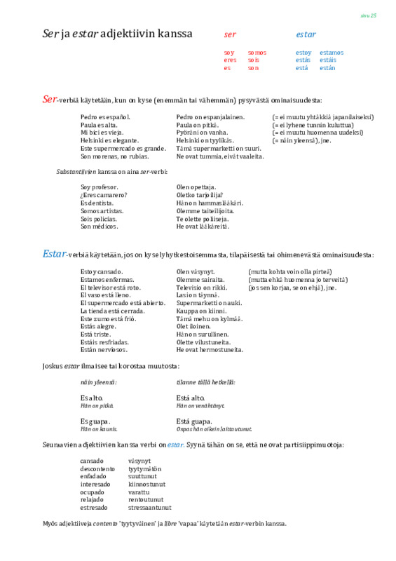 Olla-verbi adjektiivin yhteydessä Jaa Sulje Tämän tiedoston tekstivastine: (tyhjä tekstivastine) SER ja ESTAR adjektiivi doc.pdf 54.6 kt