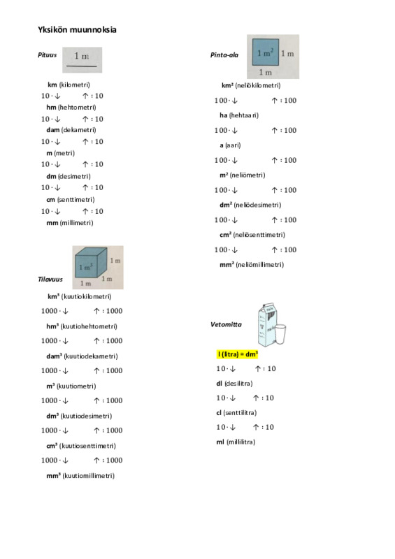 Etuliitteet, yksikkömuunnokset, suureet