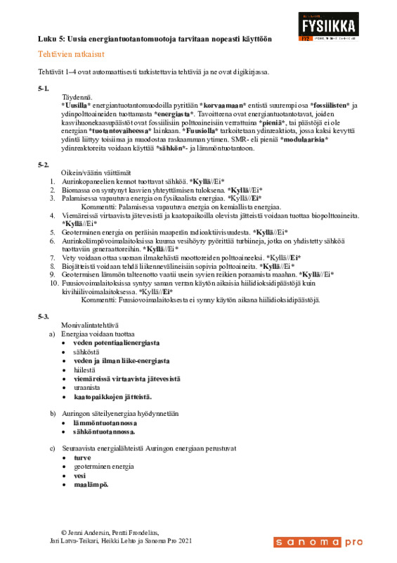 Kirjan tehtävien vastaukset