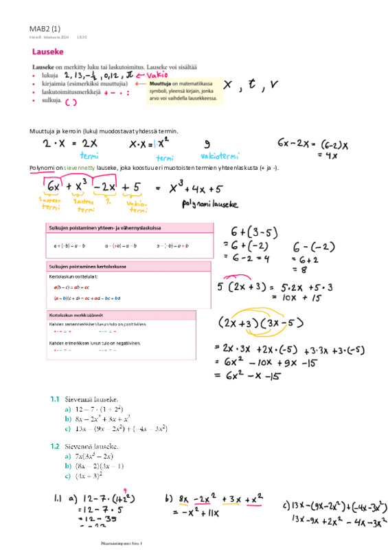 Lausekkeet ja yhtälöt (MAB2)