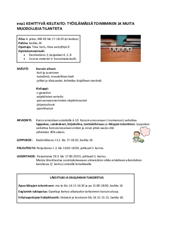 ena1 COURSE PROGRAMME, jakso 4 Jaa Sulje Tekijä: Tiina Varis Tämän tiedoston tekstivastine: (tyhjä tekstivastine) ena1 COURSE PROGRAMME, Tiina Varis, jakso 4.pdf 311.1 kt Kommentit Kirjaudu sisään lisätäksesi tähän kommentin