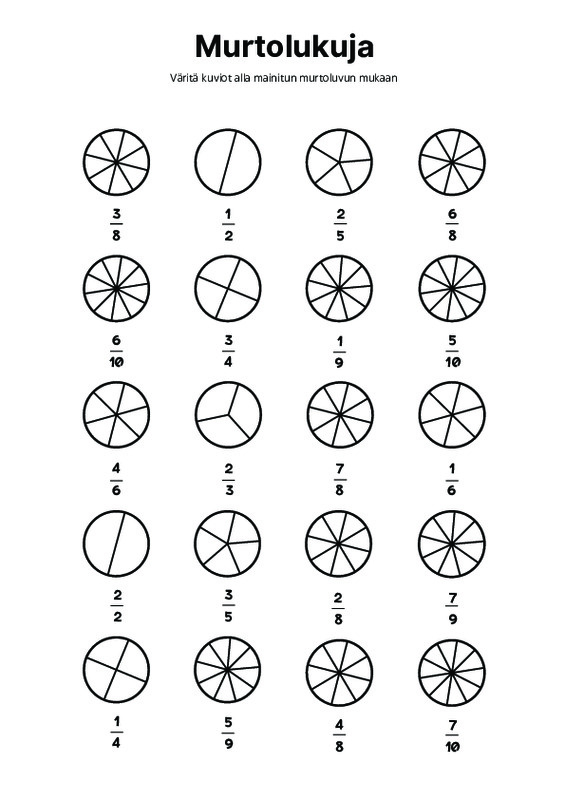 Murtolukujen väritys, vertailu ja yhteenlasku Jaa Sulje Tämän tiedoston tekstivastine: (tyhjä tekstivastine) murtolukujen alkeispaketti.pdf 329 kt Kommentit Kirjaudu sisään lisätäksesi tähän kommentin