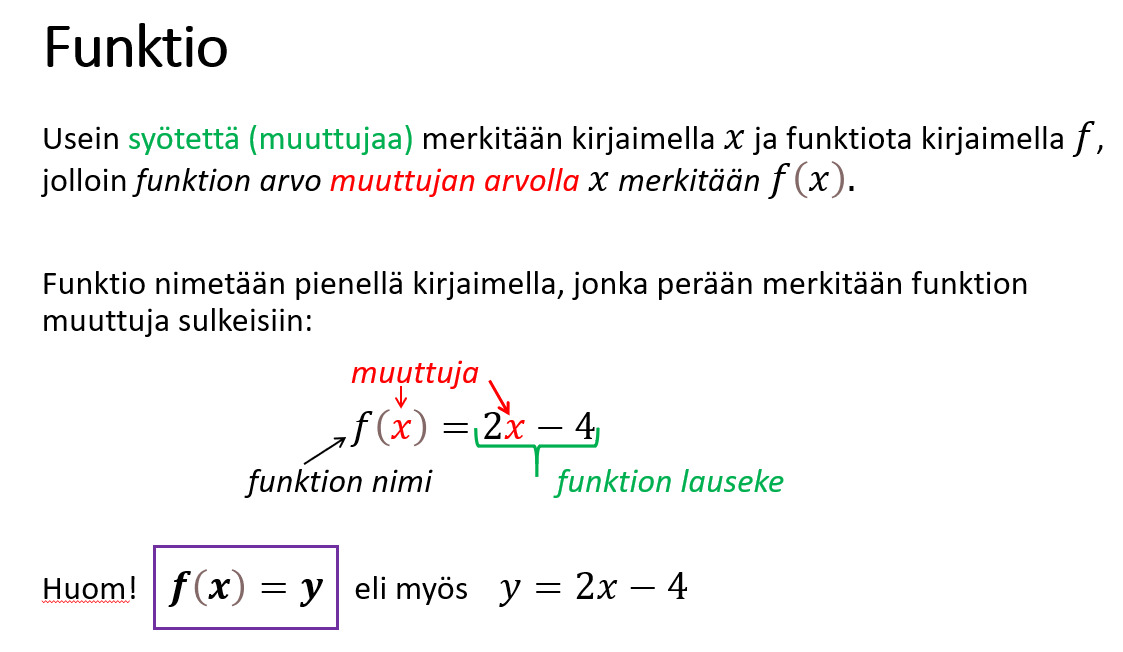 to 10.4. Funktio ja funktion arvo