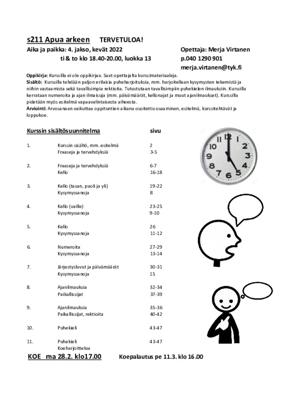 Kurssiohjelma kurssille As212 Jaa Sulje Tämän tiedoston tekstivastine: (tyhjä tekstivastine) s211 Apua arkeen 4. jakso 2022, ti + to klo 18.40, Merja-ope.pdf 202.2 kt Kommentit Kirjaudu sisään lisätäksesi tähän kommentin