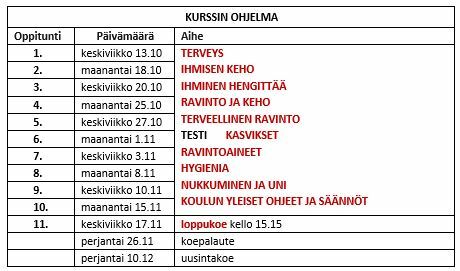 KURSSI: koodi Ate0 - oppiaine Terveystieto - kurssin nimi Terveyden perusteet