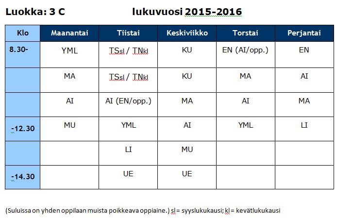 3C lukujärjestys