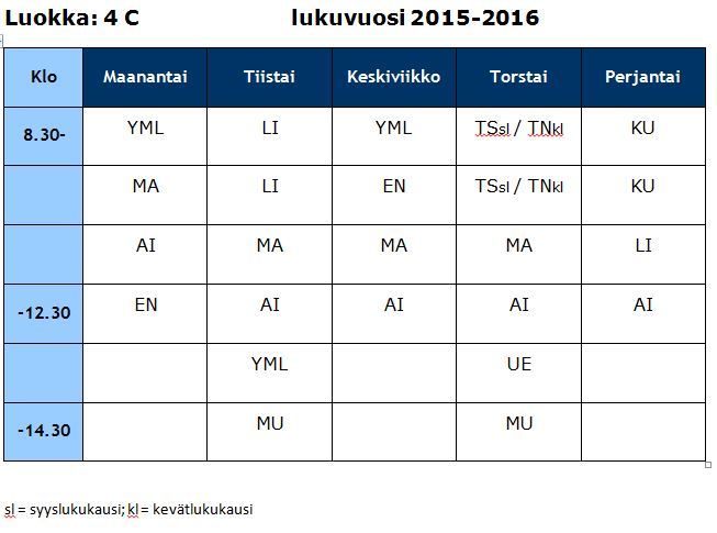 4C lukujärjestys