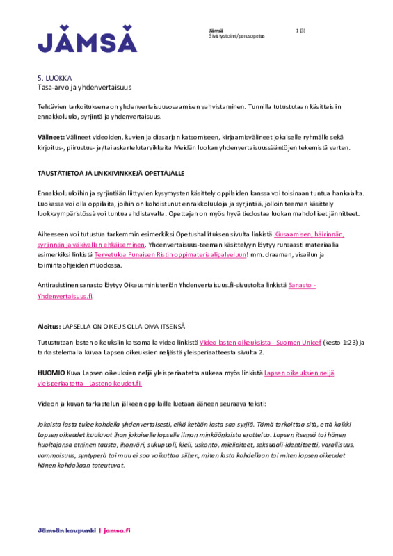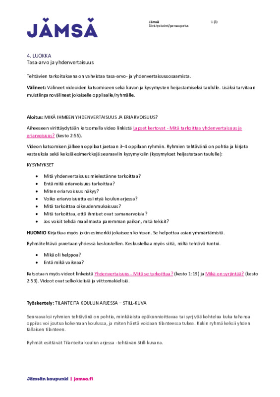 Tammikuu - Tasa-arvo ja yhdenvertaisuus Jaa 1. luokka 1. luokka tammikuu - tasa-arvo ja yhdenvertaisuus.pdf 308.1 kt 2. luokka 2. luokka tammikuu - tasa-arvo ja yhdenvertaisuus.pdf 126.8 kt 3. luokka 3. luokka tammikuu - tasa-arvo ja yhdenvertaisuus.pdf 141.7 kt 4. luokka 4. luokka tammikuu - Tasa-arvo ja yhdenvertaisuus.pdf 323.9 kt 5. luokka 5. luokka tammikuu - tasa-arvo ja yhdenvertaisuus.pdf 424.9 kt 6. luokka 6. luokka tammikuu - tasa-arvo ja yhdenvertaisuus.pdf 159.3 kt 7. luokka 7. luokka tammikuu - tasa-arvo ja yhdenvertaisuus.pdf 189.3 kt 8. luokka 8. luokka tammikuu - tasa-arvo ja yhdenvertaisuus.pdf 153.9 kt 9. luokka 9. luokka tammikuu - tasa-arvo ja yhdenvertaisuus.pdf 771.4 kt