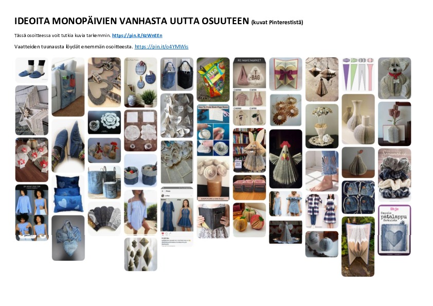 2) Tutustu tarvittaessa linkeistä löytyviin ideoihin Pinterestissä ja netissä. Etsi tarvittaessa itse netistä lisäideoita.