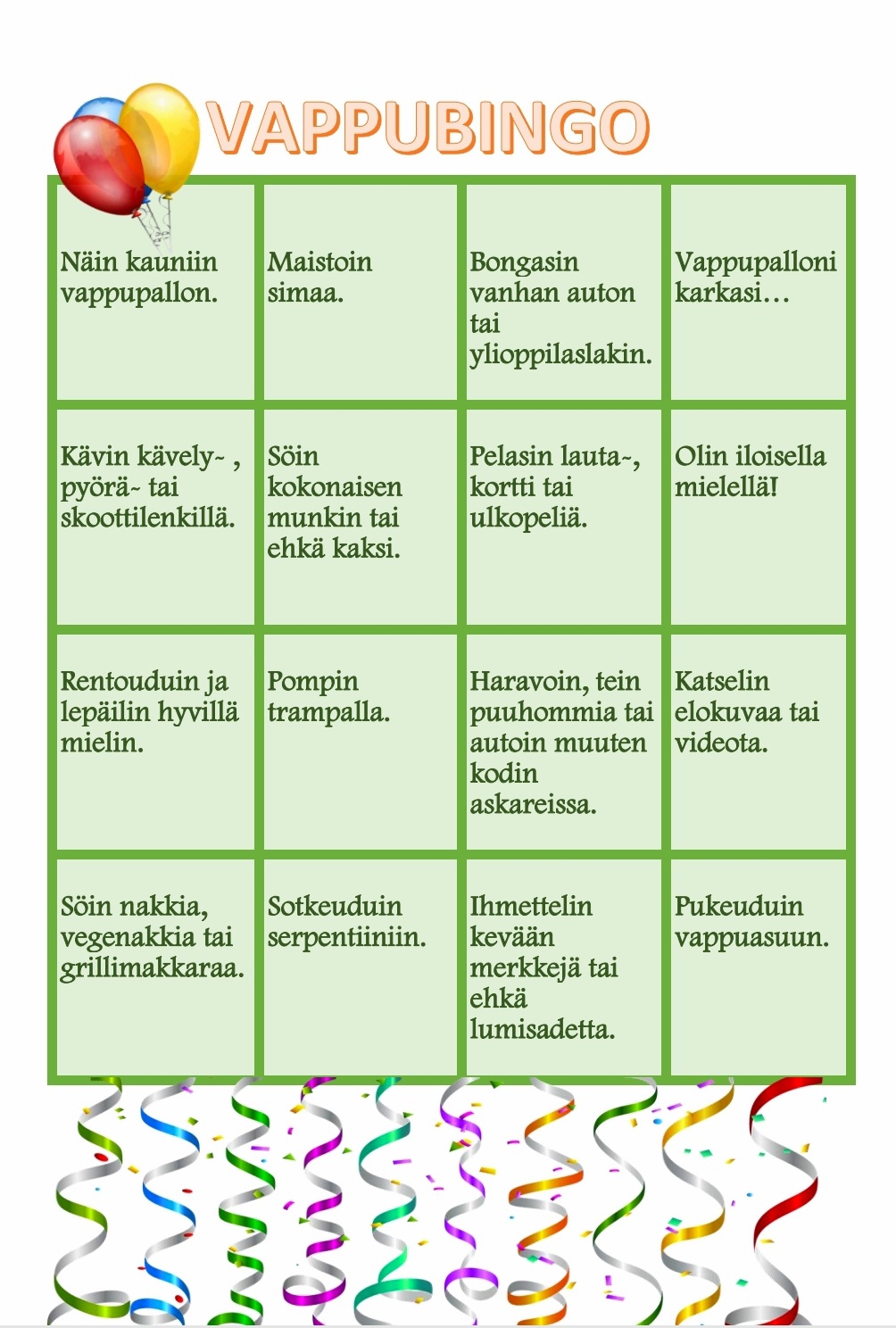 Jakaminen Sulje Vappubingo PysyvÀ osoite https://peda.net/id/958dad1e8ac PysyvÀ tiedoston latausosoite https://peda.net/id/958dad1e8ac:file/download/c0a4b43fa4a85e2bc79d8d6552153c4116949268/20200427_094419.jpg Jakaminen muihin palveluihin Share this page to Facebook QR-koodi