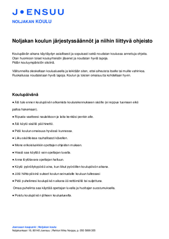 Noljakan koulun järjestyssäännöt ja niihin liittyvä ohjeisto Järjestyssäännöt - Noljakka.pdf 73.9 kt 0 kommenttia