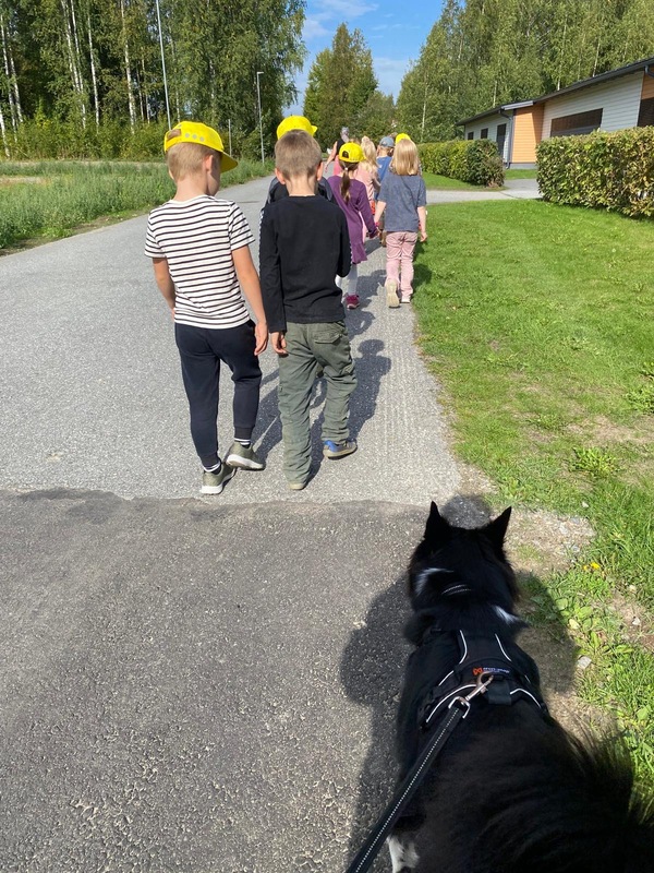 Olen Joensuun koulukoirat âkoulutuksessa, jossa minut koulutetaan pedagogiseksi apulaiseksi.