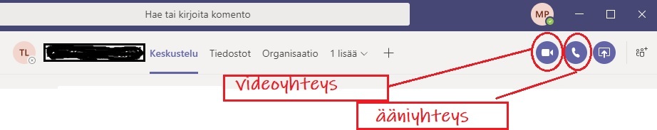 Viesti voi olla myös live-yhteys Keskusteluosiossa on mahdollista ottaa yhteys myös live-yhteytenä joko ääniyhteydellä tai videoyhteydellä