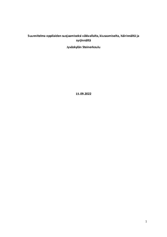 Suunnitelma oppilaiden suojaamiseksi väkivallalta, kiusaamiselta, häirinnältä ja syrjinnältä Suunnitelma oppilaiden suojaamiseksi väkivallalta, kiusaamiselta ja häirinnältä_22.pdf 182.9 kt