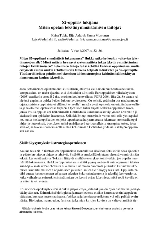 Kauppinen, M. 2010. Lukemisen linjaukset. Lukutaito ja sen opetus perusopetuksen äidinkielen ja kirjallisuuden opetussuunnitelmissa. Väitöskirja. Jyväskylän yliopisto. https://jyx.jyu.fi/dspace/bitstream/handle/123456789/24964/9789513940119.pdf?sequence=1