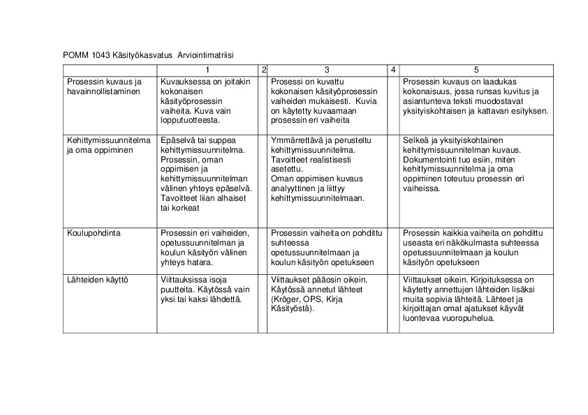 Yleinen pohja käsityön opintojaksojen arviointiin