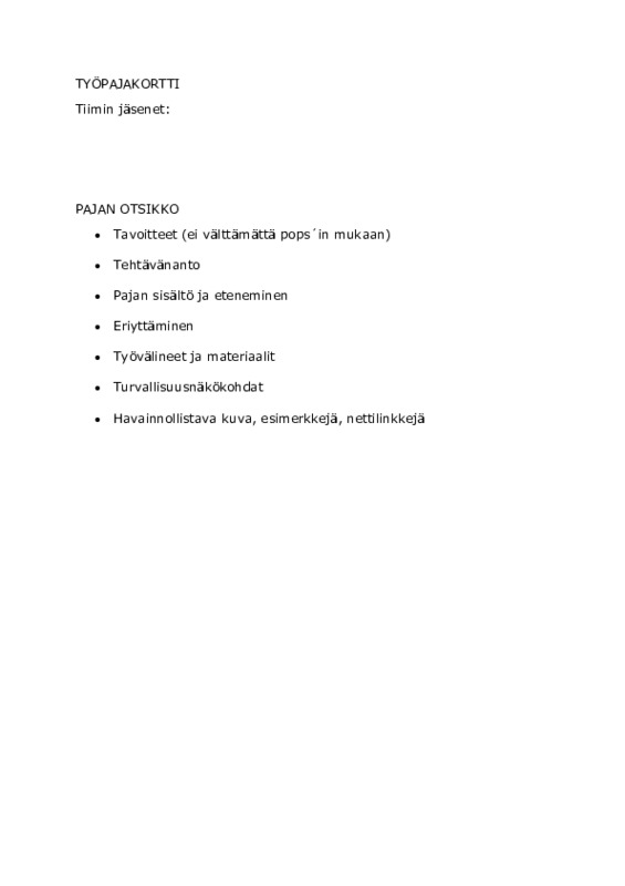 Työpajakortti.pdf Jaa Sulje Tekijä: Ulla Kiviniemi Tämän tiedoston tekstivastine: (tyhjä tekstivastine) Työpajakortti.pdf 55.1 kt Kommentit Kirjaudu sisään lisätäksesi tähän kommentin