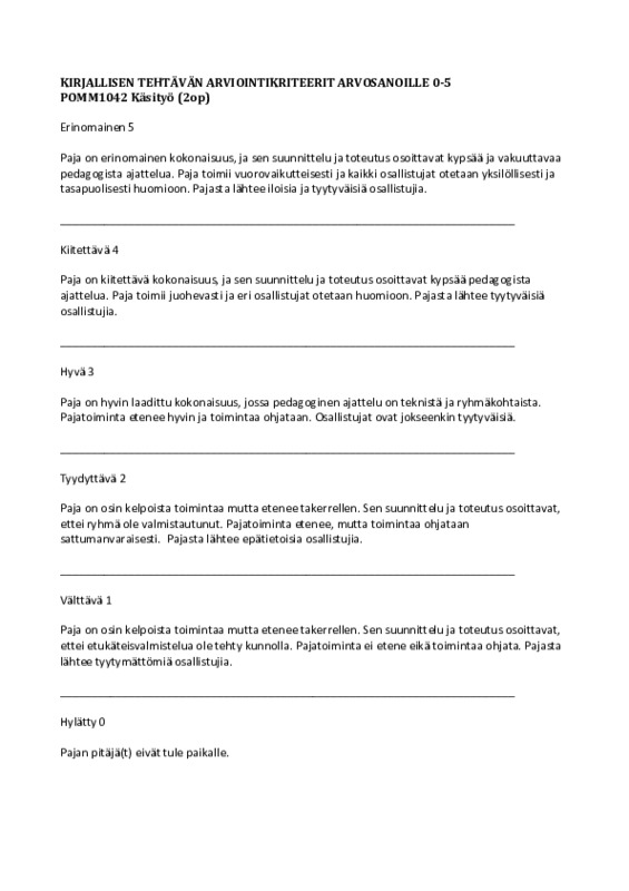 Vertaisarviointi pajan jälkeen seuraavaan torstaihin mennessä.