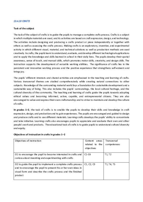 - National Core Curriculum for Basic Education 2014, Crafts