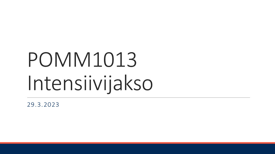 POMM1013 Intensiivijakso 29.3.pdf Jaa Sulje Tämän tiedoston tekstivastine: (tyhjä tekstivastine) POMM1013 Intensiivijakso 29.3.pdf 277.1 kt