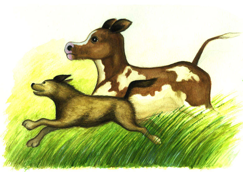 Seppo lähtee juoksemaan kohti lehmien laidunta.