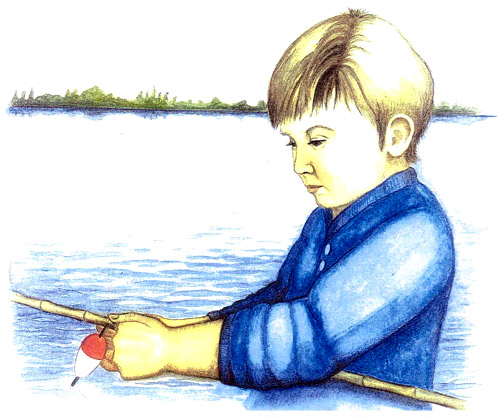 Urpo nostaa kalan vedestä.